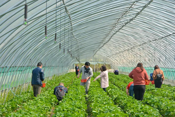 中午,在當(dāng)?shù)叵愦晦r(nóng)家樂飽嘗了一頓鄉(xiāng)間美味后,我們乘車前往舒城扶貧產(chǎn)業(yè)園——草莓示范園。成片的大棚映入眼簾,馥郁的草莓甜香撲面而來,繽紛靚麗的身影在田間穿梭忙碌,一個(gè)個(gè)籃筐里漸漸壘起了小山,品嘗著草莓的甜蜜,滋潤(rùn)喉間,其樂無(wú)窮。下午三時(shí),我們乘坐大巴,踏上歸程。