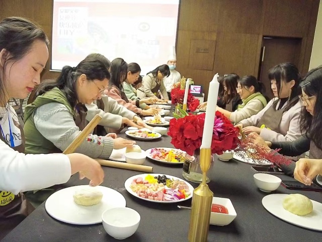在裝扮精致的活動(dòng)現(xiàn)場(chǎng),專業(yè)的西餐老師詳細(xì)地為大家講解指導(dǎo)工具的使用、披薩的制作流程,女職工們“秒變”烘焙達(dá)人,一張張創(chuàng)意滿滿、香氣撲鼻的披薩相繼出爐,讓人垂涎欲滴。