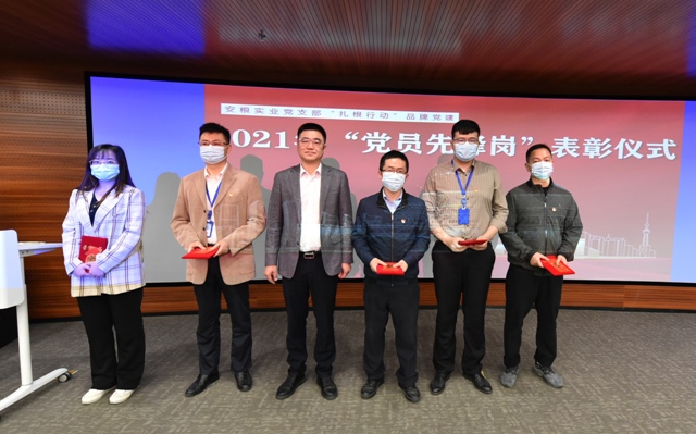 2022年4月28日上午,安糧實業(yè)黨支部在安糧中心3樓報告廳舉行“黨員先鋒崗”表彰儀式,引導黨員創(chuàng)先爭優(yōu)、攻堅克難。梁亮、李過、王慧、楊曉東、楊友勝五位同志榮獲2021年“黨員先鋒崗”稱號。