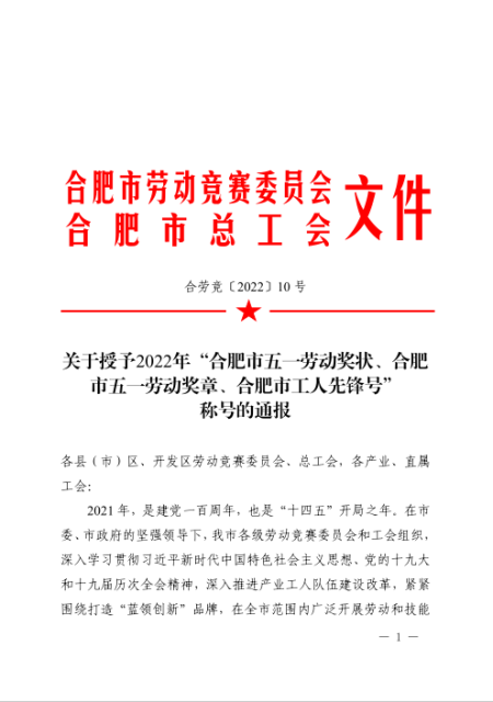 5月1日,合肥市勞動競賽委員會、合肥市總工會聯(lián)合發(fā)布《關(guān)于授予2022年“合肥市五一勞動獎狀、合肥市五一勞動獎?wù)?、合肥市工人先鋒號”稱號的通報》,合肥建工辦公室主任張海東榮獲2022年“合肥市五一勞動獎?wù)隆狈Q號。