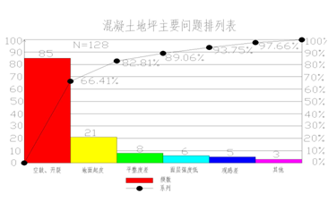 2021年6月開始室內(nèi)地坪的施工,在最初對(duì)地坪施工質(zhì)量的檢查中發(fā)現(xiàn),其一次性驗(yàn)收合格率僅為85.7%,還有較大的提升空間。項(xiàng)目團(tuán)隊(duì)經(jīng)過研討后,確定本次的QC活動(dòng)課題為《提高室內(nèi)混凝土地坪施工一次性合格率》。隨后QC小組迅速展開工作,對(duì)項(xiàng)目已施工的 8#、10#、12#樓地坪質(zhì)量進(jìn)行檢查,并對(duì)檢查的900個(gè)檢查點(diǎn)的數(shù)據(jù)進(jìn)行分析,發(fā)現(xiàn)空鼓、開裂是混凝土地坪的主要質(zhì)量缺陷。