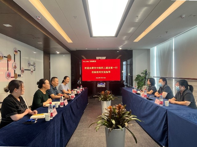 7月19日下午,合肥市中級(jí)人民法院“法官進(jìn)企業(yè)”活動(dòng)走進(jìn)安糧期貨,安糧期貨黨支部書(shū)記、總經(jīng)理韓文輝熱情接待了中院民二庭馬莉法官一行,雙方舉行了專題座談交流會(huì)。