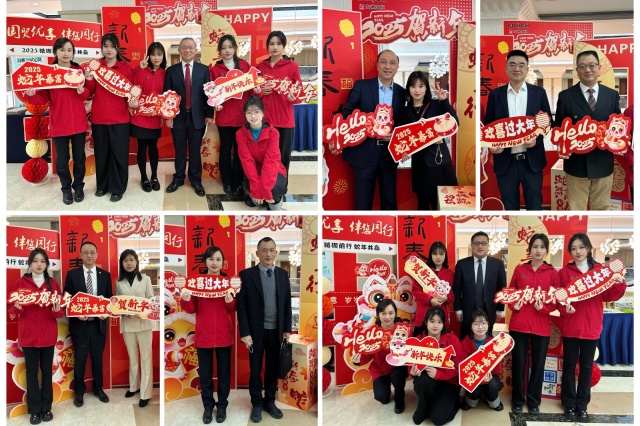 為增加此次“國貿(mào)優(yōu)享”展示活動的趣味性和參與感,活動現(xiàn)場特別設(shè)置了互動交流區(qū),配備了設(shè)計新穎、別具特色的的宣傳物料,吸引年會參會人員紛紛駐足打卡、拍照留念,有效提升了活動的傳播力與影響力,更為即將到來的新春佳節(jié)預(yù)熱了濃厚的喜慶氛圍。