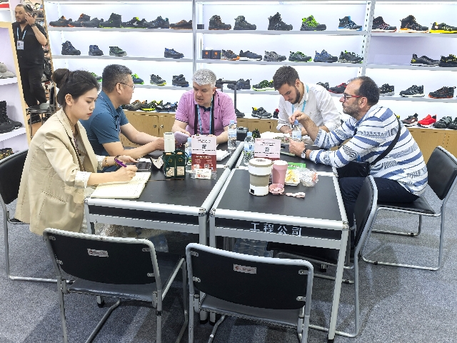鞋類展區(qū)以“創(chuàng)新科技,時尚出行”為主題,集中呈現(xiàn)了運動休閑、戶外功能等多類產(chǎn)品。主打的輕便安全鞋采用先進的減震與防護技術,兼具輕量化與高強度特性,獲得歐美客戶的高度認可,開展首日就迎來大量客戶詢價洽談;使用環(huán)保耐磨材料制成的雪地靴,憑借出色的保暖與防滑優(yōu)勢,成為北歐市場的潛力爆品。
