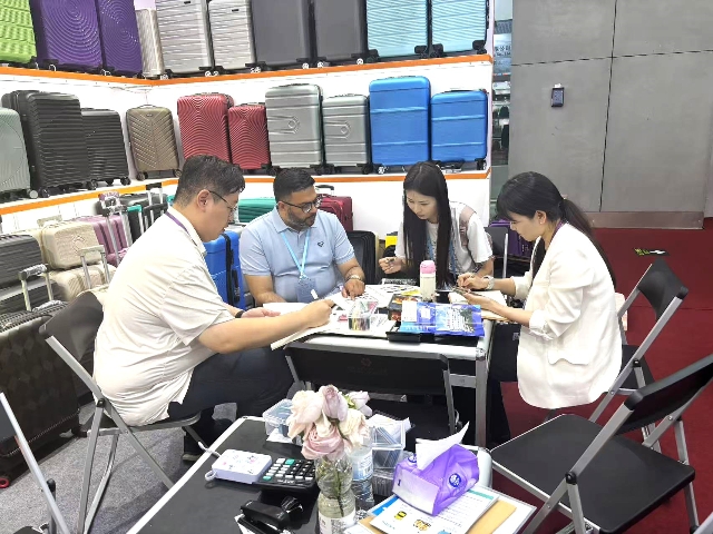 箱包展區(qū)推出70余款不同材質和設計的產(chǎn)品,如超輕材質PP拉桿箱、ABS拉桿箱、旅行布箱等。其中PP拉桿箱因其高性價比,受到歐洲、中東、南美客商青睞。參展期間,業(yè)務團隊根據(jù)客商反饋,及時調整展品布置,確保每日展出的箱包品類與陳列形式持續(xù)更新,大大提升了客戶體驗。