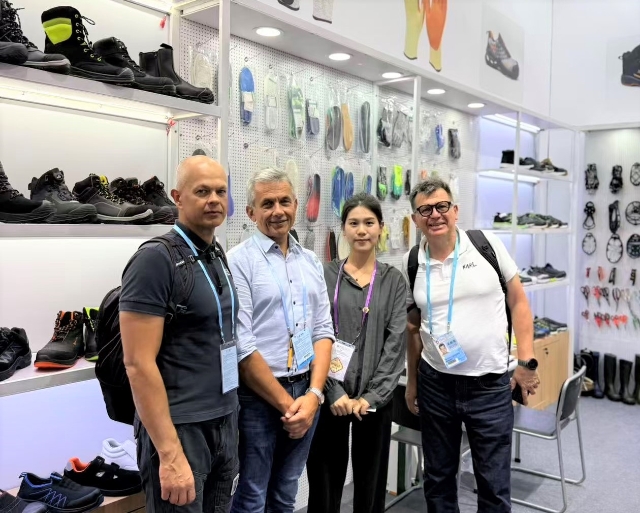 在工具類展區(qū),安糧在常規(guī)安全鞋產(chǎn)品基礎(chǔ)上,新增勞保手套、多功能剪刀、冰爪、反光材料等多款新產(chǎn)品,全面覆蓋戶外安全防護(hù)場(chǎng)景,凸顯“專業(yè)性”與“全面性”雙重優(yōu)勢(shì)。為讓客戶直觀感受產(chǎn)品品質(zhì),展區(qū)采用原木色層板與洞洞板靈活組合的裝修設(shè)計(jì),方便客戶觸摸、體驗(yàn)產(chǎn)品的材質(zhì)、工藝與功能,如拉扯勞保手套的耐磨度、體驗(yàn)多功能剪刀的剪切效果、查看反光材料在模擬黑暗環(huán)境下的警示亮度。目前已有來(lái)自法國(guó)的戶外用品品牌商提出樣品寄送需求,另有來(lái)自智利的的安全防護(hù)設(shè)備經(jīng)銷商明確表達(dá)長(zhǎng)期合作意向。