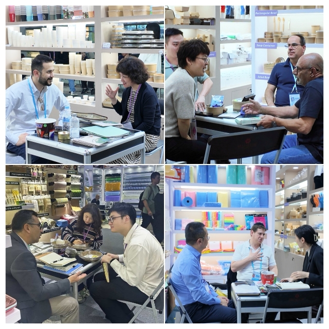 在家居展區(qū),開展首日便迎來一大波客戶咨詢。依托安糧20余年深耕一次性餐廚制品領域的專業(yè)積淀與行業(yè)洞察力,本次重點首發(fā)的紙質(zhì)水果盒、紙制刀叉餐具等創(chuàng)新產(chǎn)品,憑借獨特的差異化設計迅速成為全場焦點之一。此外,展區(qū)同步展出的紙制品、全新塑料制品、竹木制品以及無紡布制品等核心品類,全面覆蓋海外市場多元化采購需求。在品質(zhì)把控層面,安糧更是對標國際前沿標準——以展會熱門展品紙杯為例,已升級至EUDR(歐盟盡職調(diào)查法規(guī))標準,完全符合歐盟進口要求,截至目前,已與來自比利時、科威特、日本的客戶達成初步成交意向,為后續(xù)海外市場拓展奠定堅實基礎。