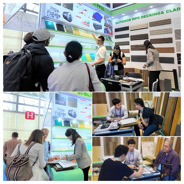 在建材展區(qū),同樣亮點紛呈。安糧以“適配性”和“實用性”贏得客戶認可。展區(qū)重點展示的室內(nèi)地板、墻板及格柵等產(chǎn)品,可實現(xiàn)“墻地一體化”裝修,為客戶提供高效、整體的空間解決方案。其中,UV亮面墻板因安裝便捷省時的特點,成為現(xiàn)場咨詢量最高的產(chǎn)品之一。值得關注的是,“波浪瓦” 作為本次展出的核心亮點產(chǎn)品,憑借其卓越的防水與排水性能、隔熱與保溫、防火阻燃等特性,吸引了來自南美和非洲區(qū)域的多位客戶,目前已與阿根廷、津巴布韋和幾內(nèi)亞等國客戶達成初步合作意向。