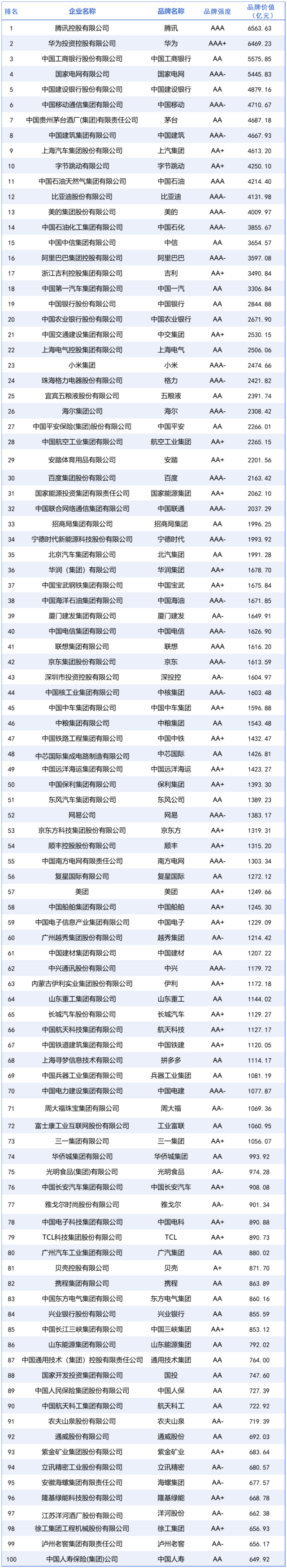 2025中國(guó)企業(yè)品牌價(jià)值TOP100